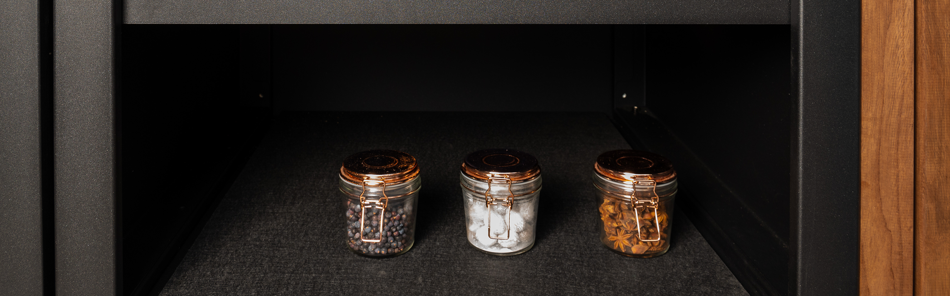 For our worktops and doors we use exclusively Fraké wood . This type of wood is thermally modified, making it a very suitable material for outdoor use.