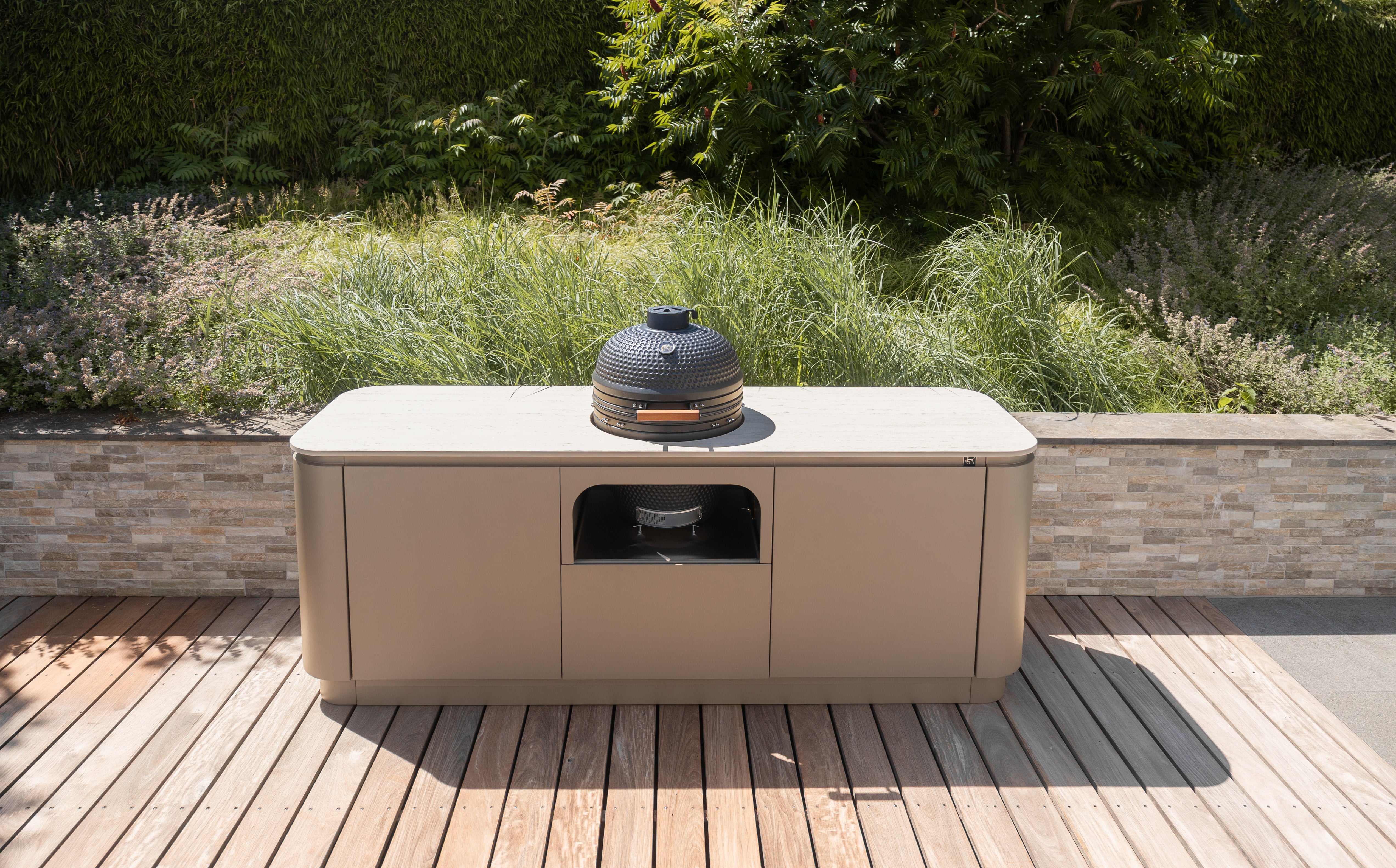 By combining high-quality materials, we guarantee that the outdoor kitchen can remain outside all year round, regardless of the weather conditions.