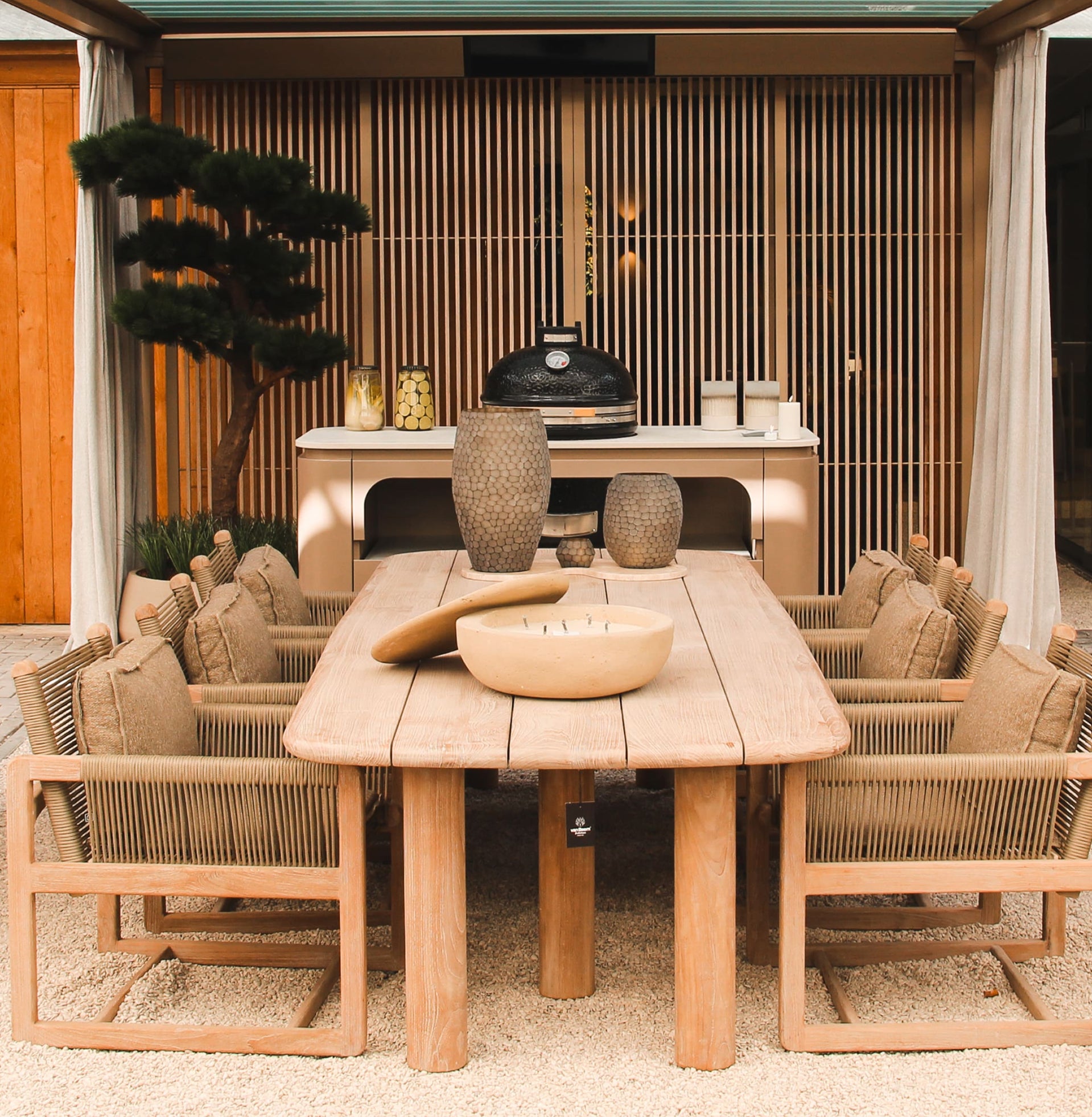 Creëer een buitenruimte waarin jouw buitenkeuken naadloos opgaat in de lijnen van de natuur.